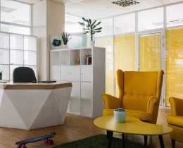 Соня Белле превратила офис создателей искусственного интеллекта в типичном бизнес-центре Петербурга в дико симпатичное место с современным дизайном.