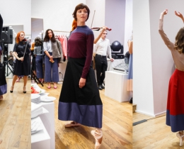 Наряды строгих силуэтов и выдержанной геометрии демонстрировали профессиональные балерины под аккомпанемент виолончели.