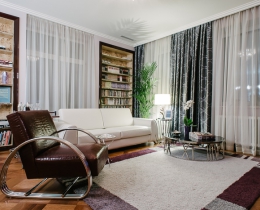 Чистый ар-деко в умелом сочетании с американскими деталями 1930-х годов — классическим баром на тележке, самолетами и кожаным креслом.