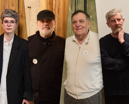 Андрей Могучий, Николай Хомерики, Владимир Березовский, Юрий Сапрыкин на открытии выставки «Неполное собрание» в Музее ОБЭРИУ