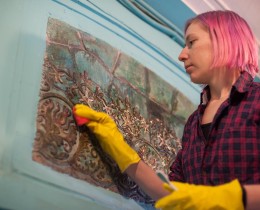 Краеведы объединения «Гэнгъ» очистят декоративную облицовку в арке дома на Петроградской