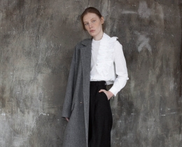 В осенне-зимнюю коллекцию марки вошли костюмы, платья и пальто в холодных оттенках, но из теплых материалов.