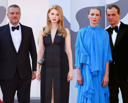 Юра Борисов, Наташа Меркулова, Алексей Чупов на премьере фильма «Капитан Волконогов бежал» на Венецианском кинофестивале
