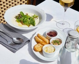 Специально к жаркому сезону шеф-повар Денис Морин разработал семь блюд: от насыщенных супов и французских классических намазок (мусс, тапенад, рийет — звучит, как песня!) до нежных десертов.