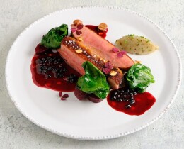 Утиная грудка с топинамбуром экразе и ягодным соусом от Алексея Петриченко