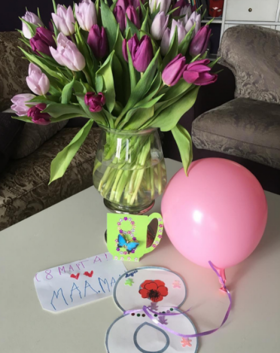 Актрисе МДТ явно не приходится переживать, что женский день празднуют раз в году. Еще бы, в семье Боярской все мужчины — от папы Михаила Сергеевича до маленького сынишки Андрея — как на подбор. Что уж говорить о звездных партнерах по съемочной площадке! Впрочем, Лиза и сама об этом знает, а в честь праздника актриса поделилась фото подарков от самых близких — букетом тюльпанов и открыткой с трогательной подписью: «С 8 марта, мама!».