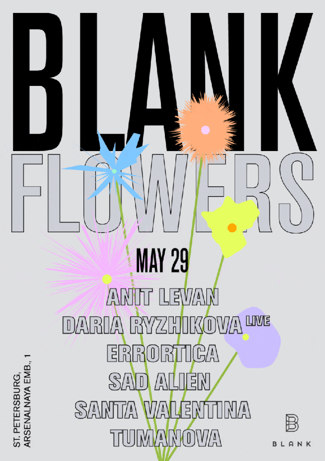 Суббота в клубе Blank пройдет под знаком цветов. Это вечеринка Blank Flowers, или женский день с Anit Levan, Daria Ryzhikova, Errortica, Sad Alien, Santa Valentina и Tumanova.