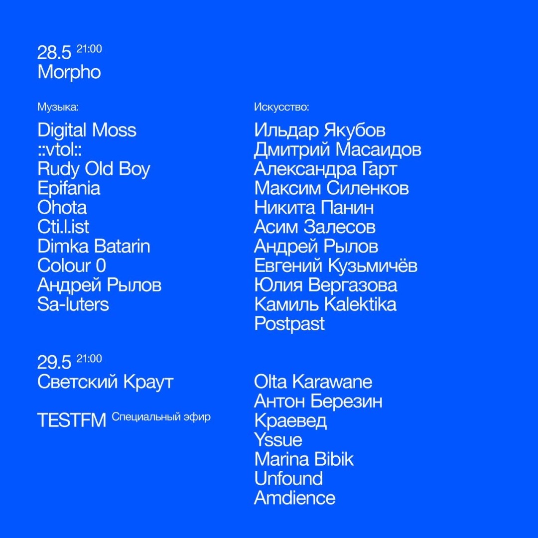 В пятницу клуб Yzeech на Арсенальной улице принимает у себя фестиваль медиаискусства и разножанровой музыки MORPHO (от пост-панка до габбы!). Лайн-ап — натуральный фулл хаус: за музыку отвечают в том числе Rudy Old Boy, CTILIST и часть дуэта Tape Night Димка Батарин, за искусство — постоянные резиденты «Стыда» Александра Гарт и Евгений Кузьмичев.