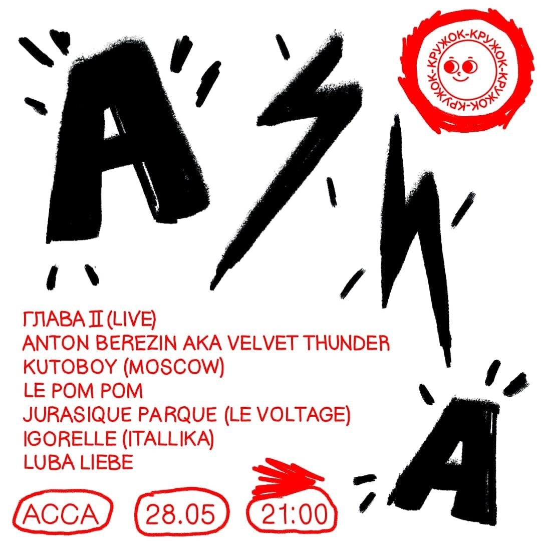 Для тех, кто предпочитает выходные без мостов, клуб «Кружок» на Конюшенной площади встречает лето. Просят одеваться тепло — вечеринки пройдут на улице, но и внутри клуб тоже работает. В пятницу здесь правит АССА — ГЛАВА II (live), Антон Березин aka Velvet Thunder, Ilya Kutoboy (МСК), Le Pom Pom, Luba Liebe и бессменные идеологи вечеринки Jurasique Parque (Le Voltage) и Igorelle (ITALLIKA). В субботу — CASPER(МСК), Богдан Ра, Никита Буч, Loophie aka Dj Polysorb, Женя Чувашов, Вася Финогенов.