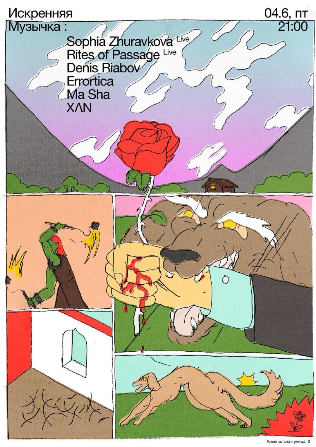 В пятницу в клубе Yzeech вечеринка Дениса Рябова — «солнечная колыбель кайфа, укрывшись в которой не страшен ни один серый волчок». В лайн-апе Sophia Zhuravkova и Rites of Passage с лайвами, а также сеты от Ma Sha, Errortica, XΛN и самого идеолога вечера.