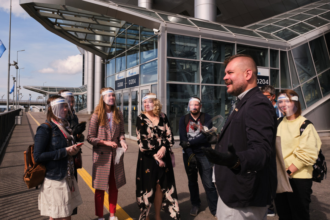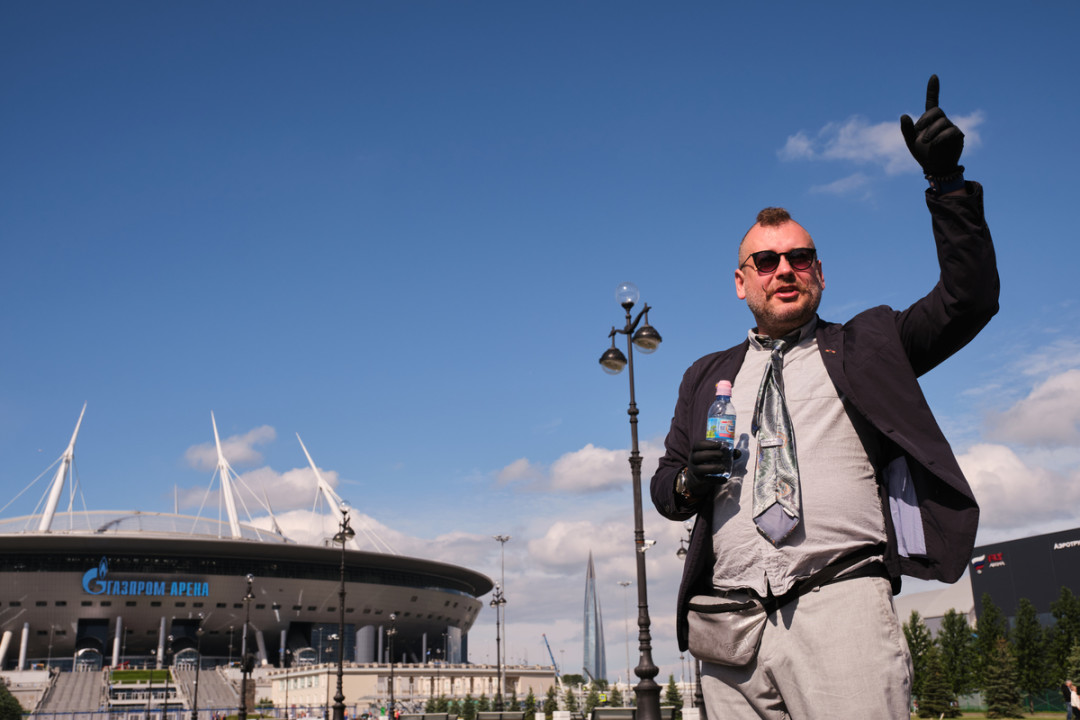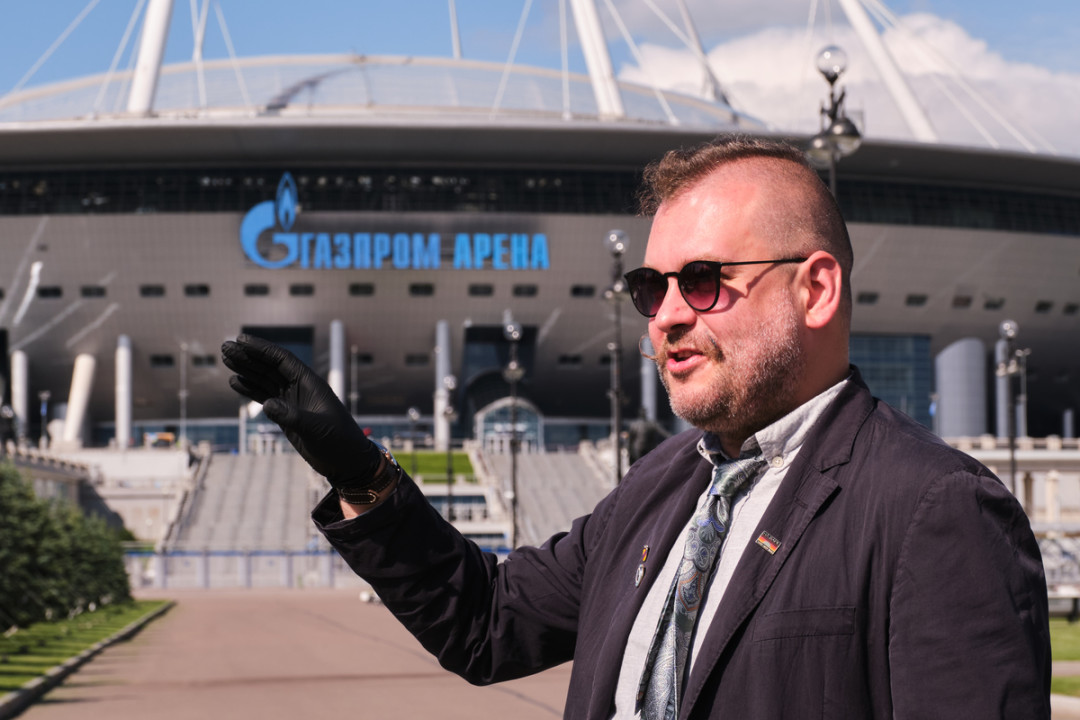 Стартовали, как обычно, на нашем автобусе (сине-бело-голубом, кстати). Гид — известный спортивный журналист, комментатор и видеоблогер Федор Погорелов. Он помнит каждый гол, забитый «Зенитом», и знает жизнь клуба в деталях, о которых не прочитаешь в книгах. Маршрут и сценарий — его авторская разработка.