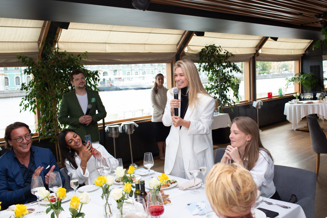 Среди именитых гостей присутствовали: блогер Виктория Портфолио, персональный стилист Ханна Хмелева, фотограф и дизайнер Ирина Складнова, актриса театра и кино Екатерина Фурсенко, владелица питерского Prive7 и попечители фонда «Доброделы» Вероника Плеханова и Ирина Адрова, а также многие другие.