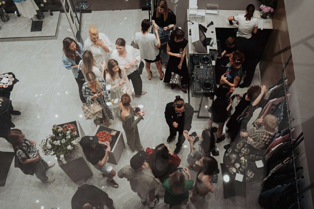 На мероприятии гостей ждала коктейльная вечеринка с фуршетом под диджей-сеты Александры Столяровой, показ с презентацией весенне-летних коллекций, общение, фотографирование, розыгрыши и подарки.