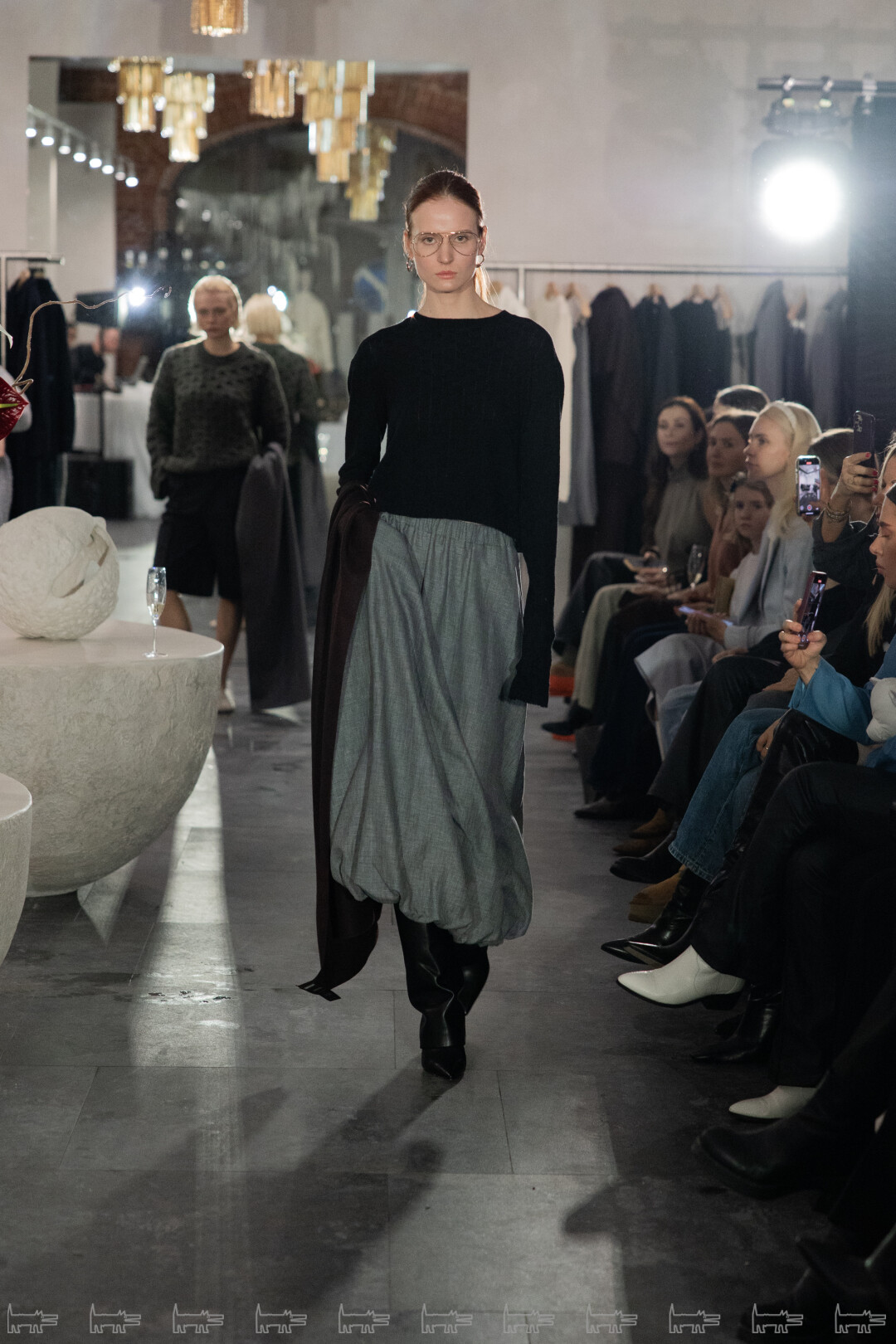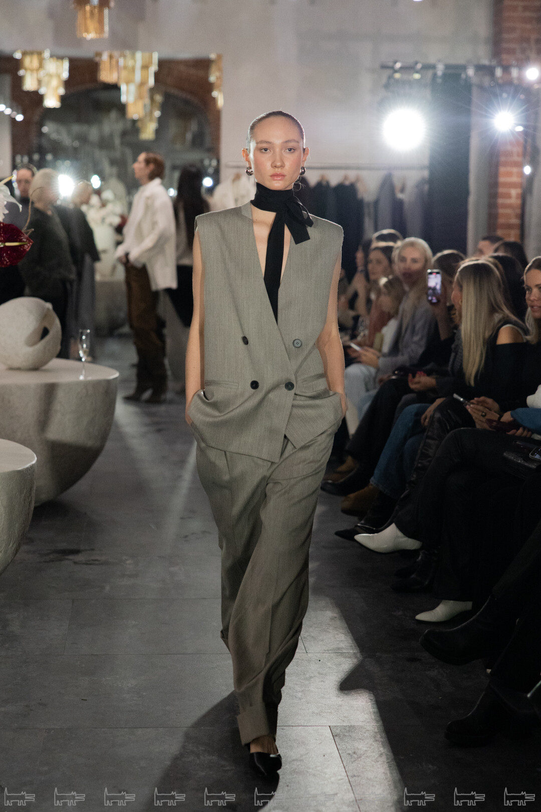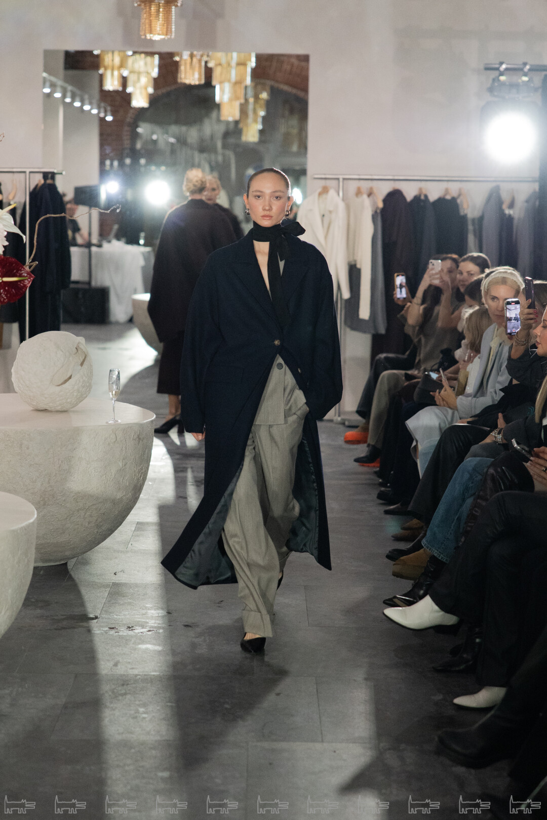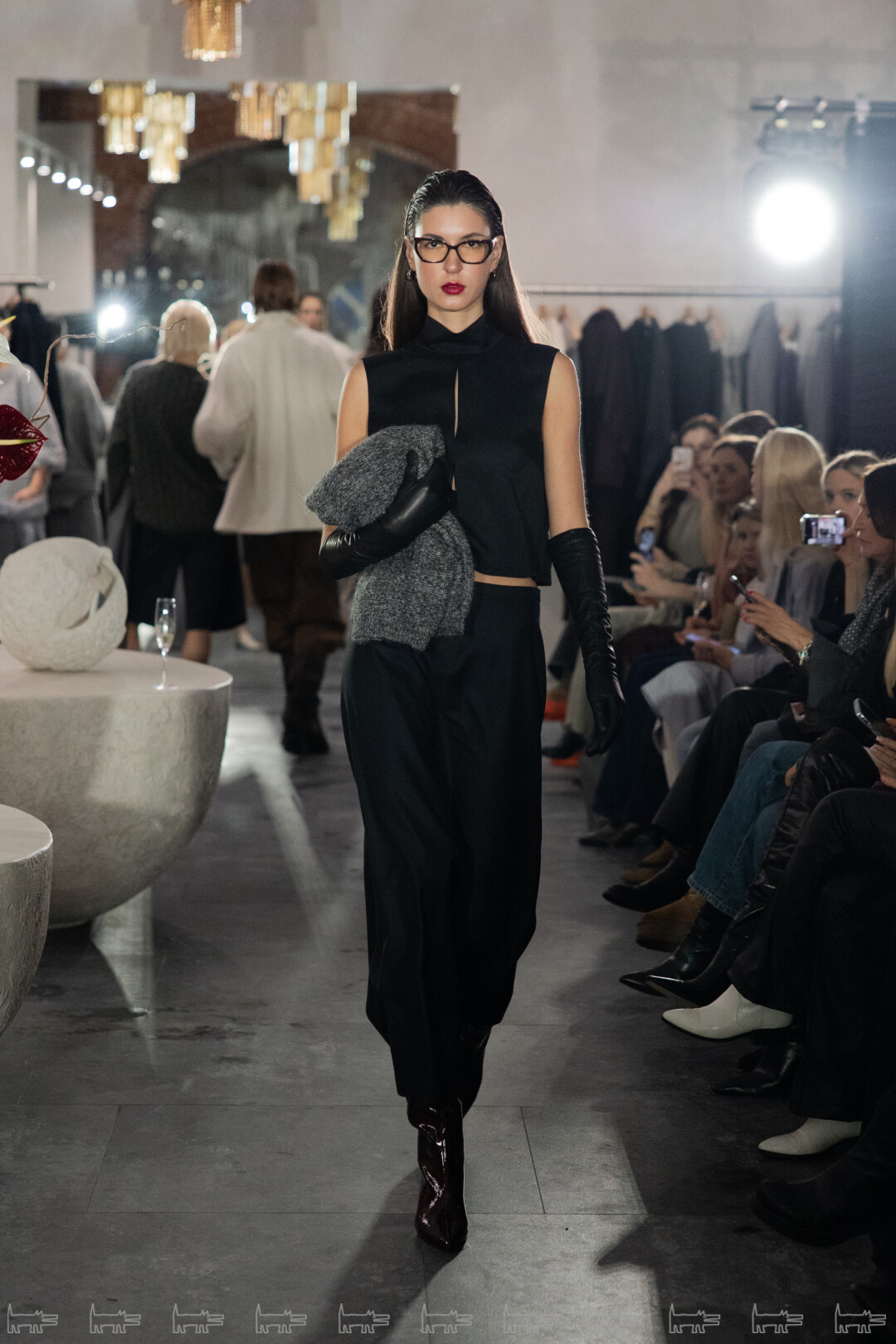 Главным сюжетом вечера стал показ новой зимней коллекции The light and the shadows. В визуальном коде коллекции соприкасаются лишь тени и свет (больше ничего лишнего!). Только синергия природных оттенков, тональностей черного, белого и серого. Интеллектуальный минимализм работает в выигрышном альянсе с натуральными итальянскими тканями: в The light and the shadows используются кашемир, шифон, шелк, лен, шерсть и другие премиальные материалы.