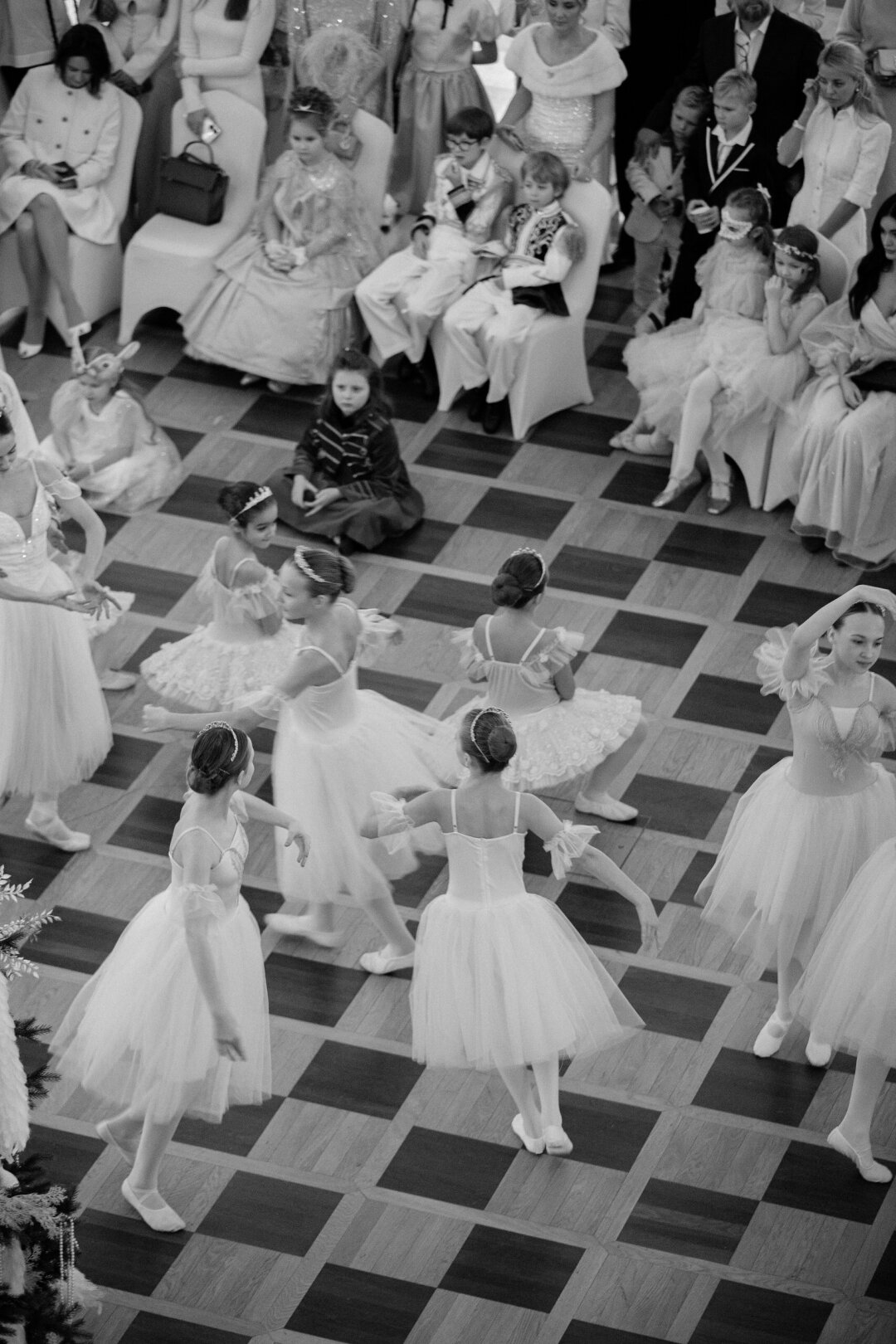 Праздник посвятили сказкам, поэтому для маленьких гостей дресс-кодом были заявлены карнавальные костюмы. Взрослые предпочли элегантные луки: в светлых тонах у дам и темных у кавалеров. Кульминацией маскарада стал всеобщий хоровод, после которого все дети в зале получили подарки. Рождественские сюрпризы Russkaya Skazka подготовила вместе компанией 4lemons.