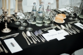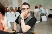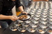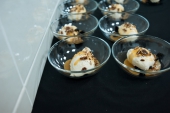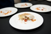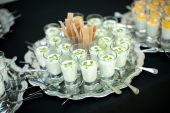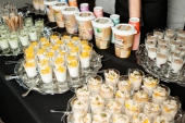 В качестве амюсбуша компания «Молочная культура» предлагала угощения от Алмаза Искакова, например, ряженку с камчатским крабом и манго или пана котту из ацидофилина с желе из сицилийских апельсинов.