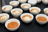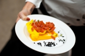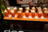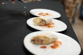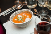 Открыл застолье тар-тар из тунца с азиатским соусом, бататом и оливками от Игоря Зорина из «Villa ZимаЛeto», который подали под Pinot Grigio Brut Rose, Canti. Микро-версию хита нового стрит-фуд проекта Food Retail Group «Кулек» – шавермы с курицей и луковым чатни – приготовил Иван Кравец, уличное блюдо отлично пошло под Fumaio 2012, Castello Banfi. Шеф-повар Алексей Ермаков из секретного бара El Copitas взбодрил всех мексиканским острым супом-позоле с томленой свининой под красное Barbera d'Asti Superiore 2011, Canti.