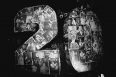 Инфантильные золотые ленты, исполински «двойка» и «ноль» из ч/б снимков, толпа разномастной публики - вот они, праздничные атрибуты «Грибоедова».