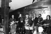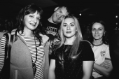 «Застольная» аудитория заведения также разделилась на характерные группы: молодые девушки с грустным взглядом, некоторые из которых оказались в зале волей своих отцов-тусовщиков, и клубные марафонцы. Последние, чередуя взрывные шоты и разливное, занимали места поближе к Хиллу и под сеты SONAR & BACK2FUTURE, Пуго и Бампера продолжали юбилейный вечер «похмельной средой».
