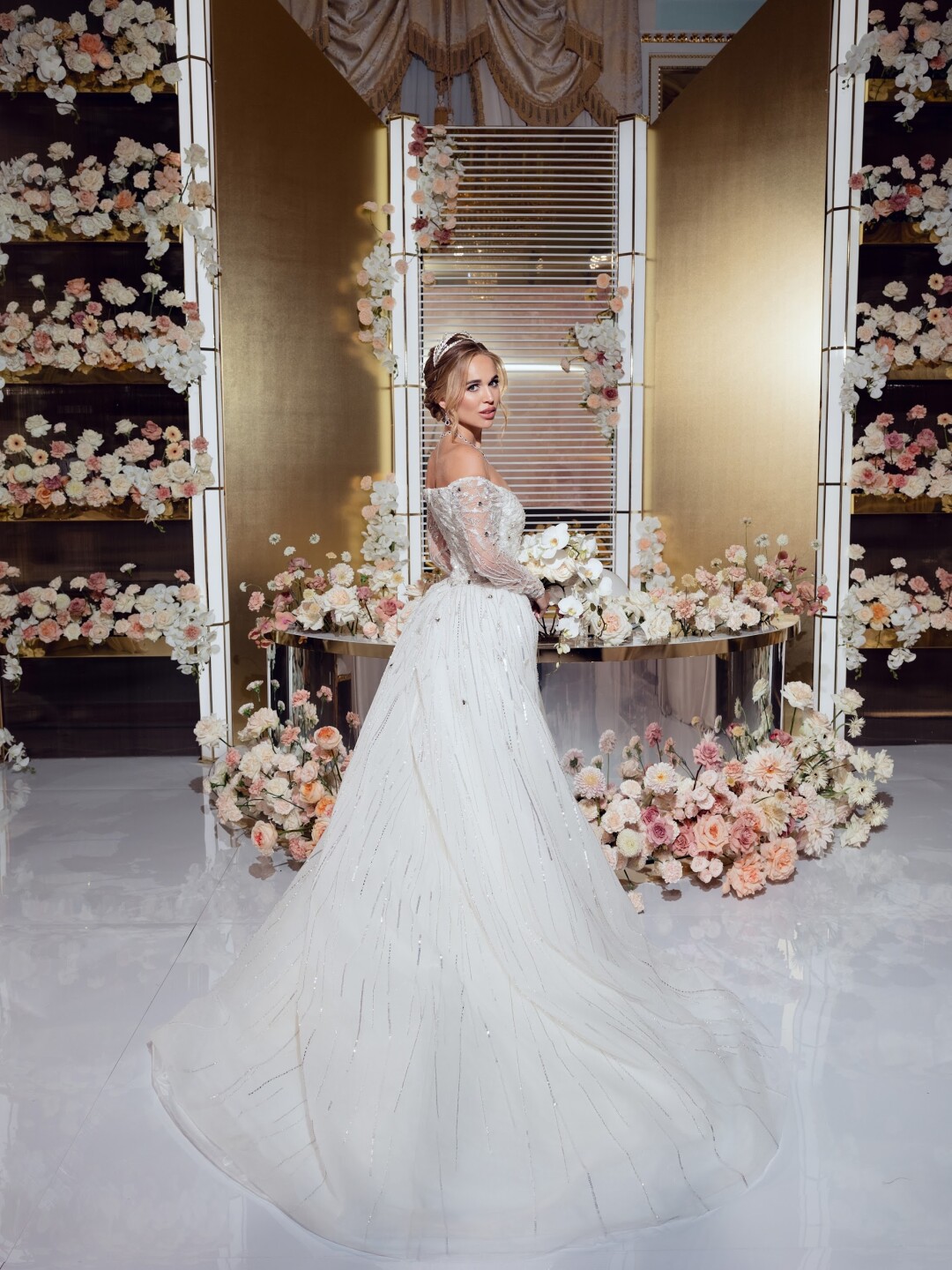 Второе платье на вечернюю часть было марки Berta. Еще было третье платье, которые мы сшили специально для свадебного танца. Оно было невероятно нежным и воздушным.