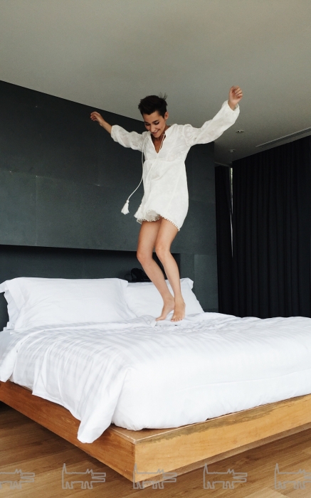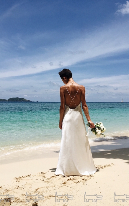 Все происходило на берегу моря, на отдельном острове, куда нас доставили на небольшой лодке. Своеобразным ЗАГСом для меня и Ильи стала цветочная арка, где мы обменялись кольцами и произнесли клятвы. После — традиционная фотосессия и не совсем традиционный променад на белом скутере. На нем мы вернулись в наш стильный и красивый отель Naka на Пхукете, где распивали праздничное шампанское и прыгали в свадебных нарядах в бассейн. Идеально!