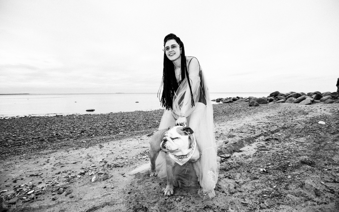 Катя: Праздновали событие через неделю после росписи, на него были приглашены самые близкие друзья, примерно 40-60 человек + собака по имени Болт, член нашей семьи. В какой-то момент мы подумали, что он забыл про хозяев и почувствовал себя главным на этом празднике жизни. Конечно, тут ему и барышни, которых он так любит, и еда со всех сторон — полный рок-н-ролл!