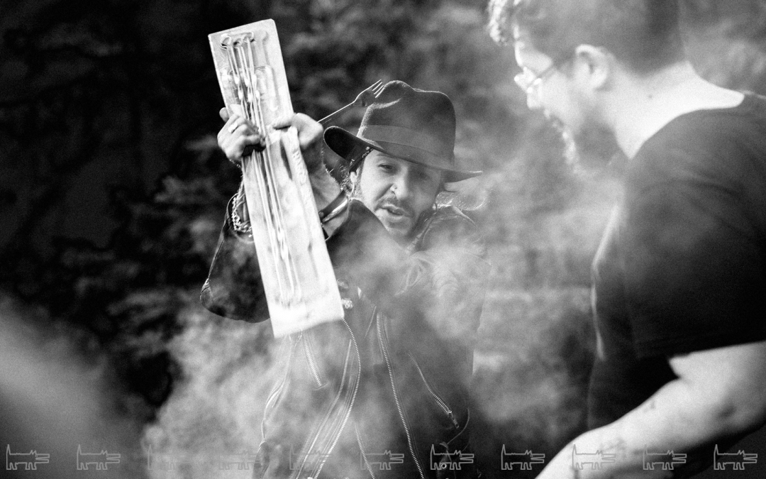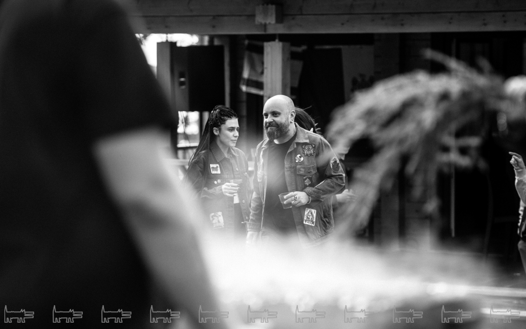 Катя: Мы хотели, чтобы все прошло в спокойной и дружеской атмосфере, напоминающей барбекю — как в американских фильмах. Вместо духового оркестра с Маршем Мендельсона за пультом меняли пластинки Рома Смирнов и Валера Дятлов, а вместо букета невесты и подвязки у нас были фляга с бурбоном Makers Mark и пачка классического Lucky Strike.