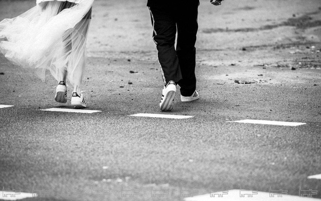 Катя: В соответствии с идеей нашей свадьбы мы точно не хотели традиционных образов. Поэтому для Саши подобрали костюм с элементами цыганского лоска — золотыми лампасами на брюках и пиджаке. Заказали его на сайте ASOS и дополнили шляпой от Stetson и ювелирными украшениями, а на мне был комплект от петербургского бренда So Number One, с которым я давно дружу и которым восхищаюсь. На ногах у нас с Сашей были «суперстары» Adidas Originals, и это неслучайно. Во время нашей поездки в Израиль мы оба купили кожаную обувь, которая ужасно натерла ноги. Решение проблемы приняли единогласно — отправились в магазин Adidas, купили по паре кроссовок и оказались в раю — в тот самый день мы решили, что не променяем их даже для свадьбы.
