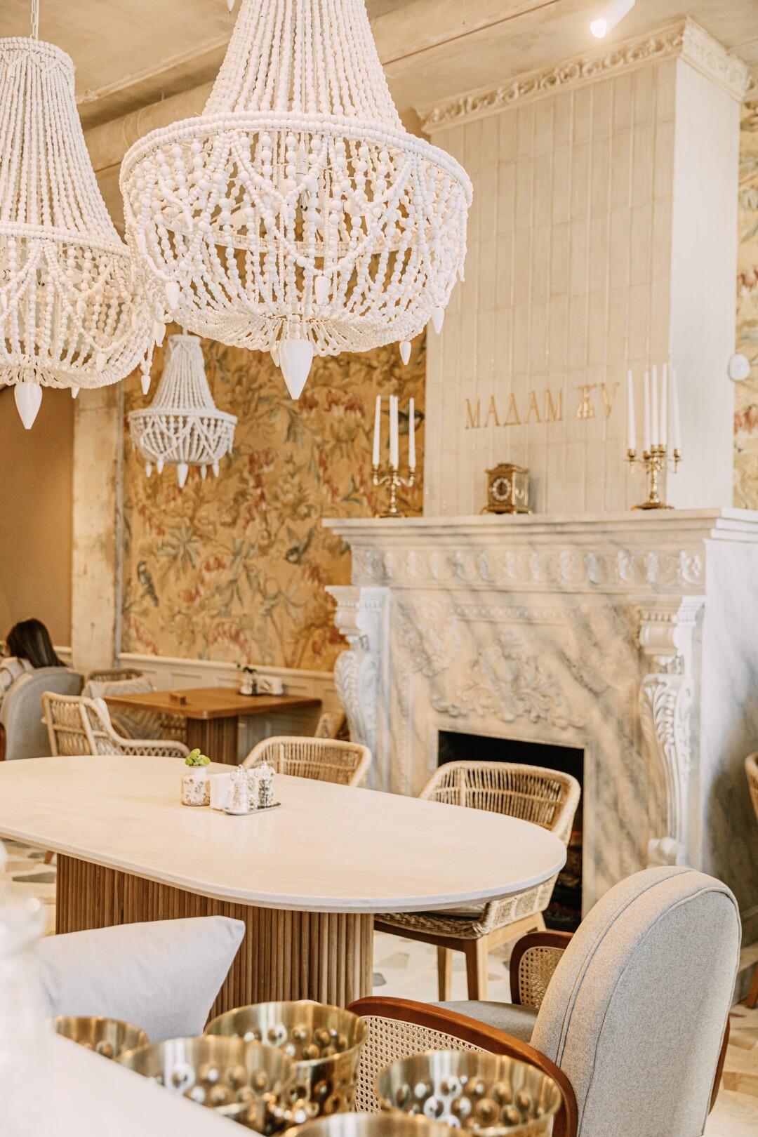Выделите достаточно времени, чтобы посетить это место, потому здесь хочется рассматривать каждую деталь. От глянцевого классического камина до шикарной посуды и мебели — это место позволит наслаждаться не только едой, но и атмосферой. Фрески на стенах в новом ресторане расписывались вручную полгода. Интерьер интернациональный: тайские вазы, балийские люстры. «Мадам Жу» — органичный сплав Азии и Франции, возможность в рамках одной трапезы попробовать блюда двух легендарных гастрономических школ. Угоститесь луковым супом и салатом с крабом и помело. И, конечно, заходите на завтрак. День, начатый в «Мадам Жу», будет удачным.