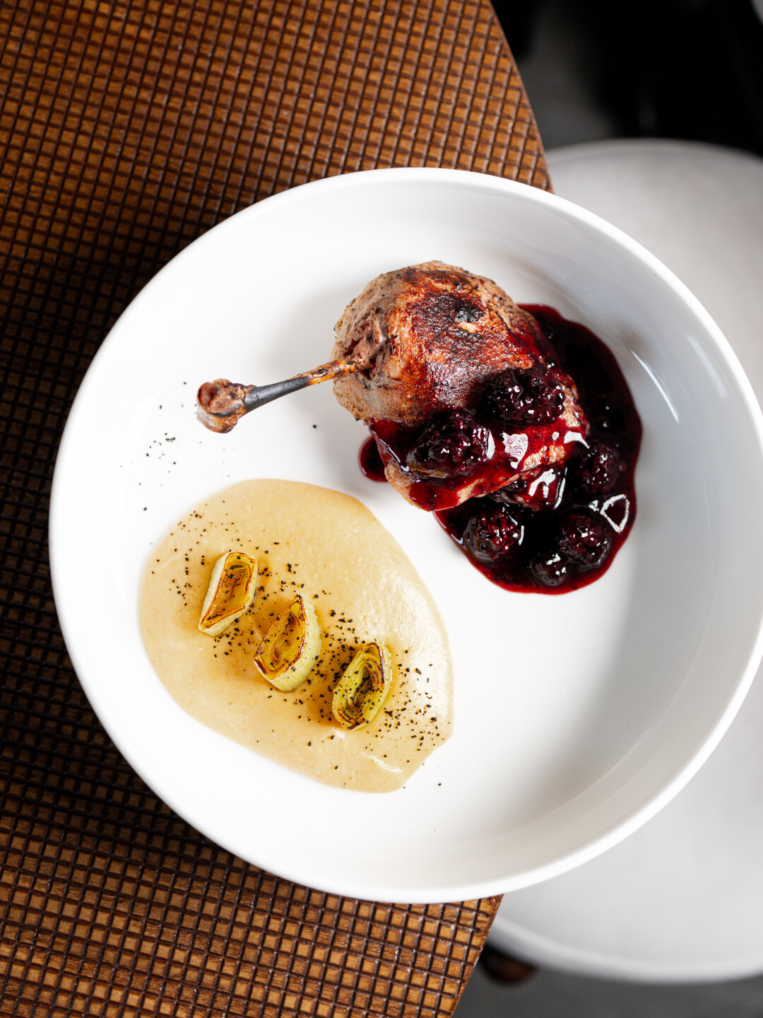 Кухню заведения, за которую отвечает шеф-повар Александр Ежов, можно описать как mediterrasian (с англ. «средиземноморский» — Прим. ред.) — это своего рода дуэт итальянской и японской гастрономии. «Гедонист» может стать прекрасным сеттингом как к неторопливому завтраку, например, свежим круассаном с мортаделлой, домашней страчателлой и зеленым салатом, так и к романтичному ужину палтусом и молодой спаржей в икорном соусе и муссом из каштана. А на десерт — тарт с ягодами и итальянской меренегой. Интерьер разработала дизайнер Ирина Райхер, в нем сочетается две концепции: светлая Италия и темная Азия. Центральная фигура зала — трехметровый винный холодильник.
