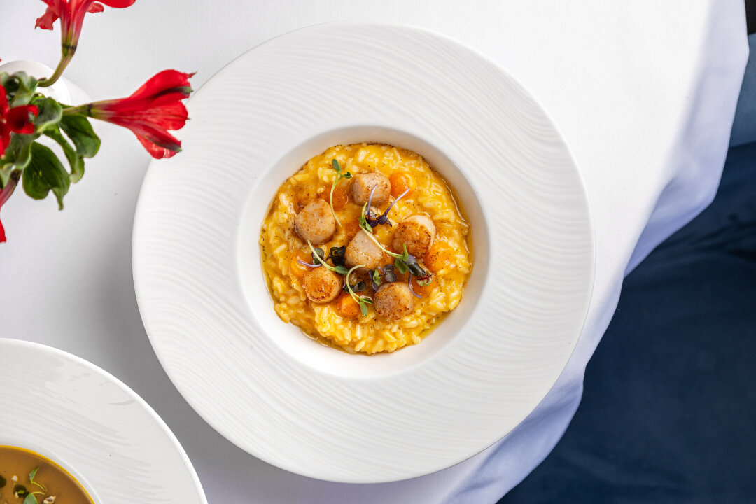 Особая гордость ресторана — икорный бар и блюда на мангале: филе миньон, корейка ягненка и сочный стейк рибай. Завершают гастрономический путь десерты, среди которых — более 15 позиций: от домашнего наполеона и медовика до трендового баскского чизкейка и фисташкового торта.