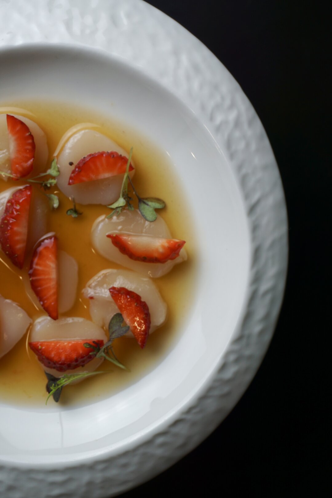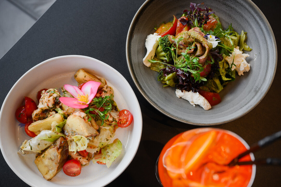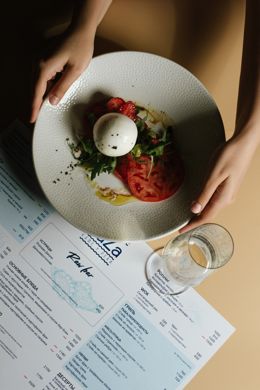 Уютная веранда La Bottega — живые цветы, мягкий солнечный свет и изящные блюда летнего меню. В топе — томаты и клубника с спешл-соусом тоннато, брокколи и цветная капуста с шпинатным песто, гребешки с соусом фуа-гра и цветной капустой в двух текстурах, домашняя паста с зеленым пармезаном и нежнейший галантин из сибаса со сливочно-икорным соусом.