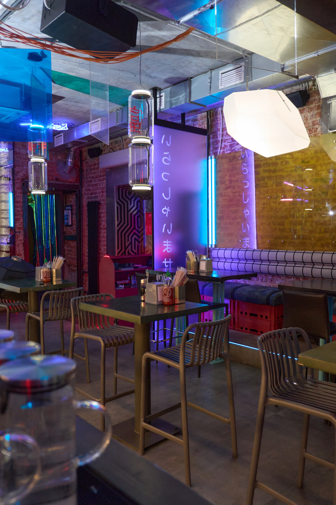 Кибер-изакая от создателей «Поке Рамен» — место, куда хочется возвращаться снова и снова. Как минимум для того, чтобы еще раз разглядеть каждую деталь. Телевизоры с видео в духе азиатской рекламы, алтарь в честь матери-кормилицы, шпионский экран. Охотимся за местами и утиным рамэном, Том Ям лапшой с морепродуктами и супермоти с манго и малиной.