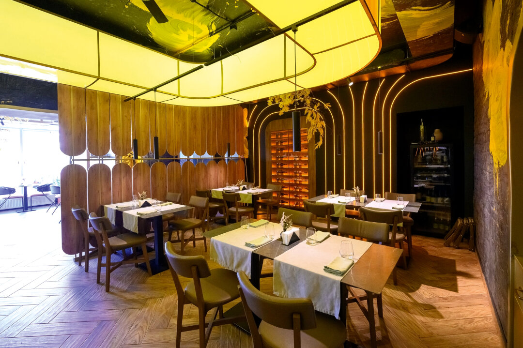 Вокруг ресторана формируется сообщество тех, кто ценит искусство, историю и гастрономию. Блины с крабом «Невыносимая легкость бытия», пате из оливок с анчоусами и взбитыми сливками, запеченный баклажан с соусом дюрр — блюда из меню приглашают праздновать жизнь, а царь-стол с мозаикой, собранной буквально по крупицам со всего света, зовет прикоснуться к великому.