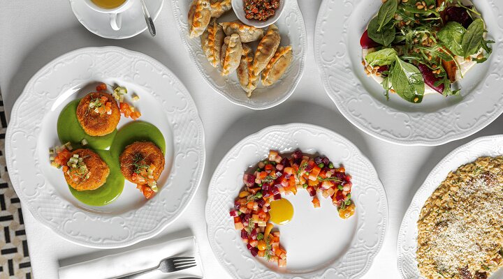 В специальном меню ресторана Nolan Wine&Kitchen салат с вяленой свеклой, фенхелем и помело, мезе из белой фасоли с кейлом и печеным сельдереем, овощной суп минестроне, стейк из цветной капусты с соусом карри и рисом, грибовница из белых грибов, батат с соусом черника-перец. На десерт дают яблочный крамбл с вяленым виноградом и щавелевым мороженым.