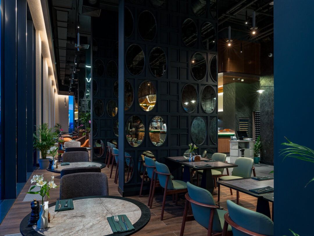 В интерьере, разработанном агентством Four Elements, сделали ставку на натуральные материалы: дерево, камень и приглушенный свет создают спокойную и комфортную обстановку.