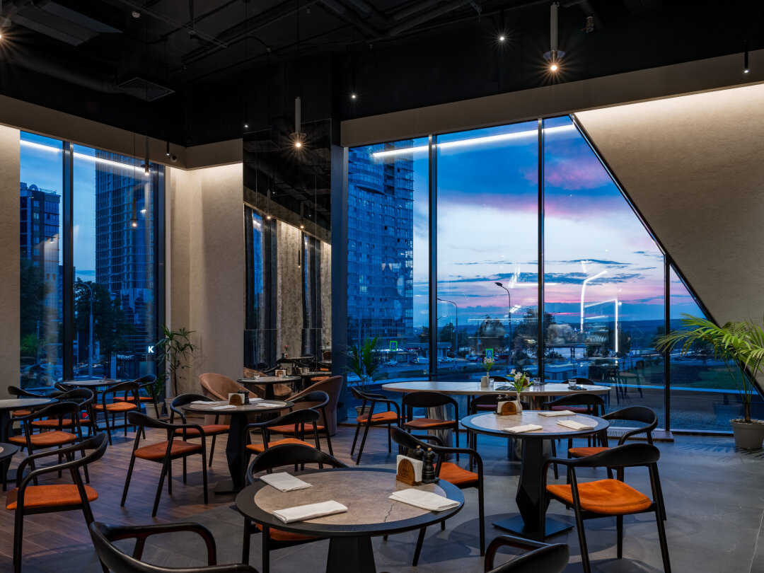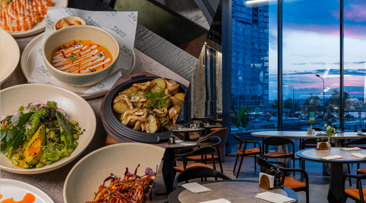 Первое, на что обращаешь внимание в Stoke, — это вид. Через панорамные окна на третьем этаже Radisson открывается тот самый открыточный вид на центр города, который мгновенно превращает любой бизнес-ланч в событие, а свидание — в сцену из ромкора.