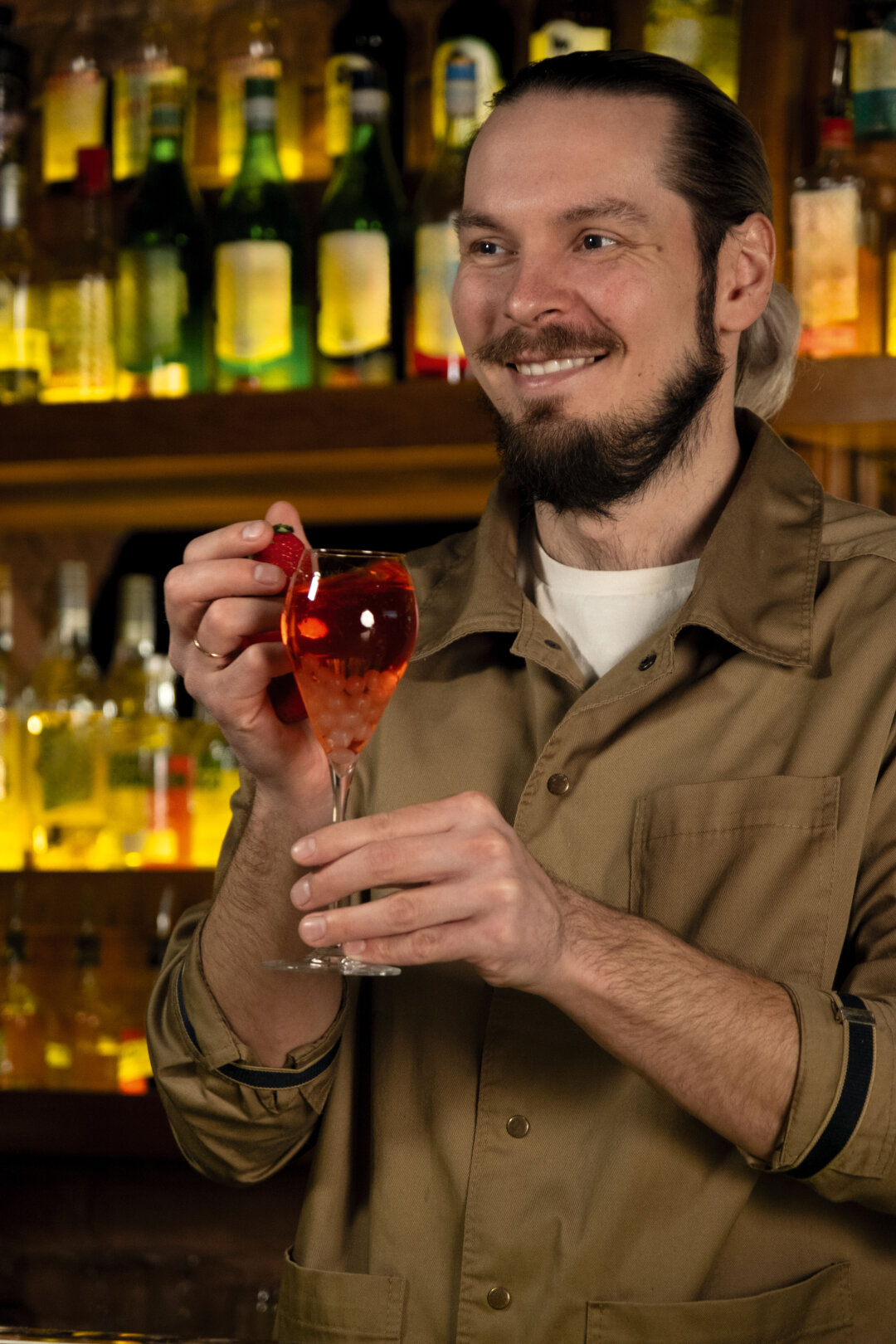 В 16 лет подрабатывал официантом летом в ресторане, а через какое-то время там же решил попробовать себя за баром. С тех пор влюбился в атмосферу общения и творчества, которые царят за барной стойкой. Меня вдохновляет возможность создавать уникальные напитки и радовать гостей. Считаю, что хороший бартендер должен обладать определенными навыками общения и эмпатии, ведь мы часто становимся слушателями для наших гостей.