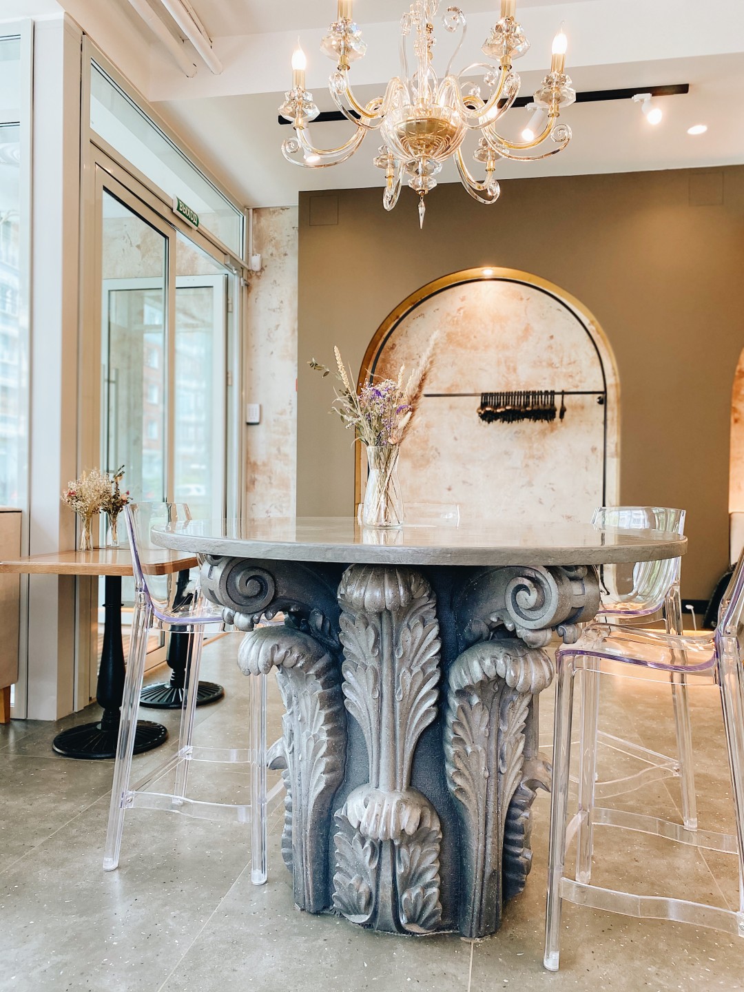 Наира: Мне было приятно работать вместе с Никой Лебедевой. Она очень тонко прочувствовала то, что я хотела передать. Главным пожеланием был цвет: хотелось, чтобы пространство было в пастельных, молочных тонах. Сразу было решено переплести классический стиль с чем-то модным, современным. В полный восторг меня привела идея Ники использовать шикарную капитель как основу для стола. Хотелось, чтобы люди, находясь у нас, пребывали в полном восторге от красоты и уюта.
