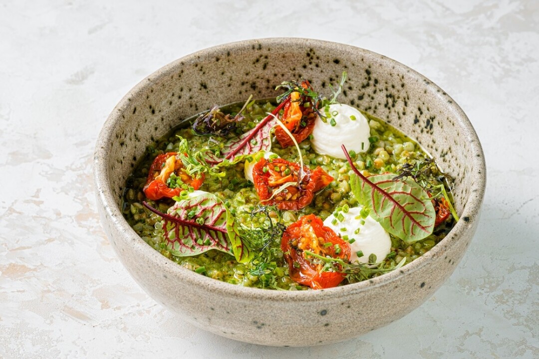 Шеф ресторана «Сказка. Еда и вино» из Ярославля придал гречке, нашей русской крупе, новые смыслы. И все это под влиянием итальянской кухни. Если вы уже пробовали в модных ресторанах гречотто, то этот рецепт - следующий шаг по превращению самой обычной гречневой каши в явление высокой кухни. Песто и пармезан - обязательны, трюфельное масло - по желанию.