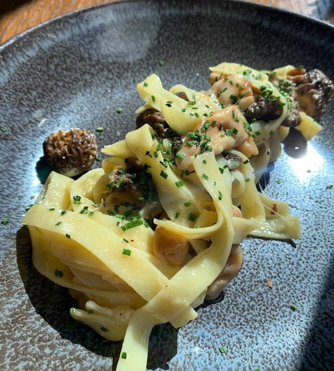 В гриль-баре Rob Roy сделали три аппетитных блюда с грибами-подснежниками. Это салат из листьев романо с соусом Вителло Тонато (790₽), мятый картофель с домашней сметаной (760₽), а также фетучини со свежим шпинатом и сморчками конфи (920₽).