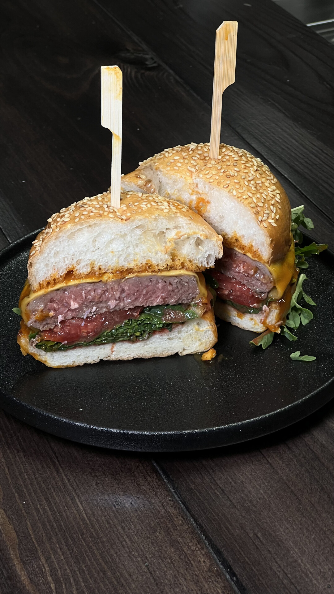 В «Гриль-гараже», который открылся совсем недавно, меню постепенно дополняется. И там уже появился бургер, уже ставший бестселлером. В составе: котлета из мраморной говядины, сыр, руккола и яркий соус на основе клюквы и манго.
