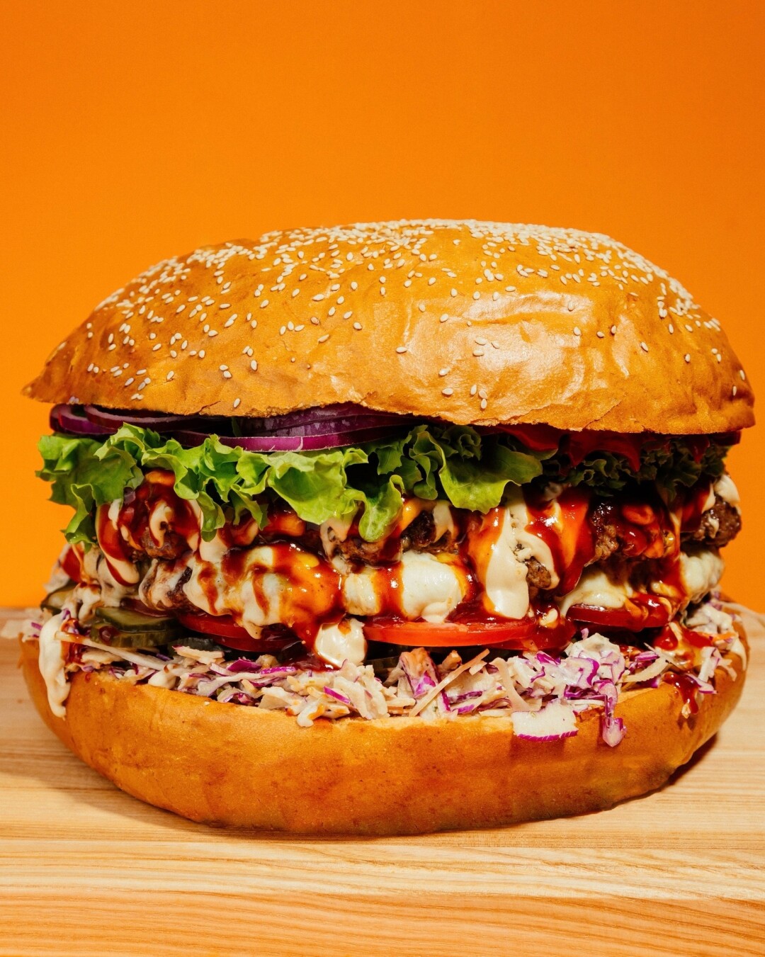 Легенда «Краснодарского парня» — трехкилограммовый «Малыш». В нем две говяжьи котлеты, чеддер, моцарелла, овощи и вызов — осилить такой в одиночку.