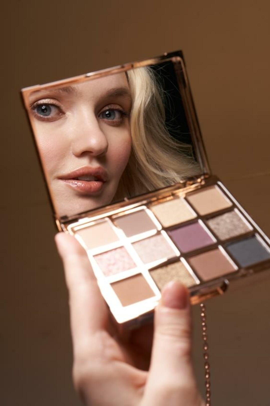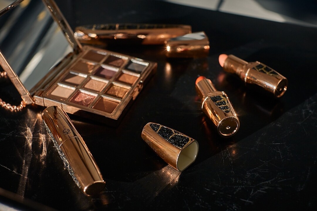 Эти новинки еще и выглядят так, что выпускать их из рук совсем не хочется: такие не стыдно будет вынуть из сумочки и подкраситься, если того требуют обстоятельства. Так, подчеркнуть глаза вы сможете с помощью набора теней для век «Розовое золото»: в нем представлены 12 пигментированных оттенков разных текстур для легкого или яркого макияжа. Нанести четкие линии и сделать взгляд лениво-кошачьим поможет жидкая подводка для глаз «Розовое золото»: комфортная в нанесении, не течет и не размазывается.
