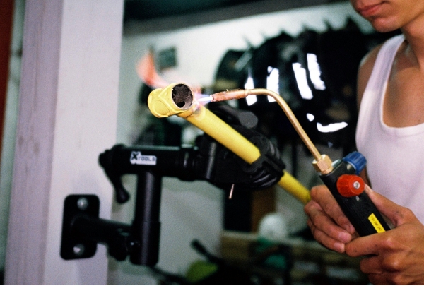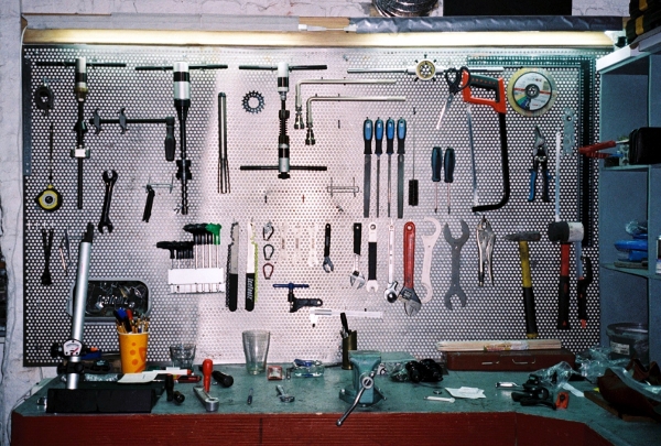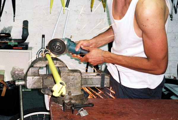 У каждого из членов нашей команды есть место работы,которое во многом определяет его занятость в мастерской. Павел Скляров занимается связями с общественностью, он распространяет информацию и готовит наши мероприяти. Также Павел занимается проектами коллаборации с дизайнерами одежды и ведет переговоры со спонсорами. Александр Ильенко работает зам. начальника цеха на металлообрабатывающем заводе, через него мы получаем и производим все детали, инструменты, заказываем материалы. Благодаря опыту в реставрационных работах у меня хорошо развита мелкая моторика, потому я паяю рамы. Александр Мальцев занимался велоспортом в Выборге, он у нас главный веломеханик – больше всех крутит гайки! У двоих из нас инженерное образование, кроме того, мы постоянно качаем мануалы из интернета. В мастерской даже сложилась целая библиотека из справочников по металлу, пайке, сварке – все это изучаем сами.