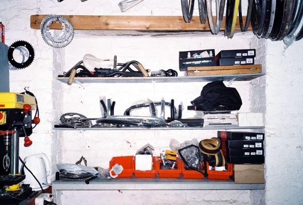 Оборудовали мастерскую всем необходимым инвентарем довольно быстро, несмотря на отсутствие опыта. Нам помогала дизайнер Ooli Mos. Она сама катается на фиксе и с большим энтузиазмом разработала нам весь дизайн, логотип и айдентику.