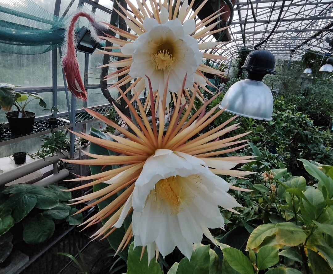 В ботаническом саду ПГНИУ расцвел селеницереус. Это кактус, который распускается преимущественно ночью, его бутон увядает через несколько часов.