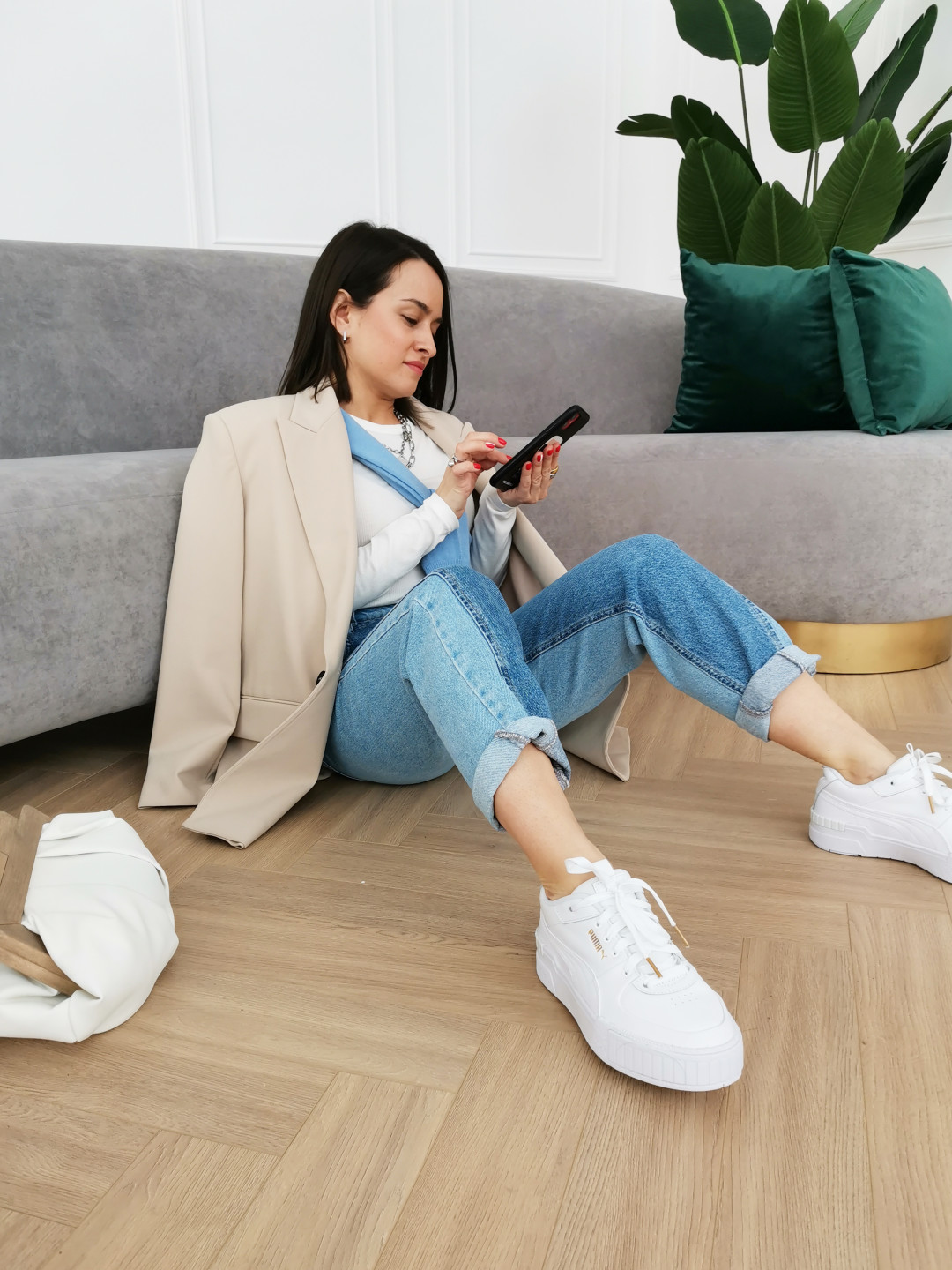 Брюки-сигареты, длинное пальто, пиджак и вообще вся одежда, которая не сковывает движения.