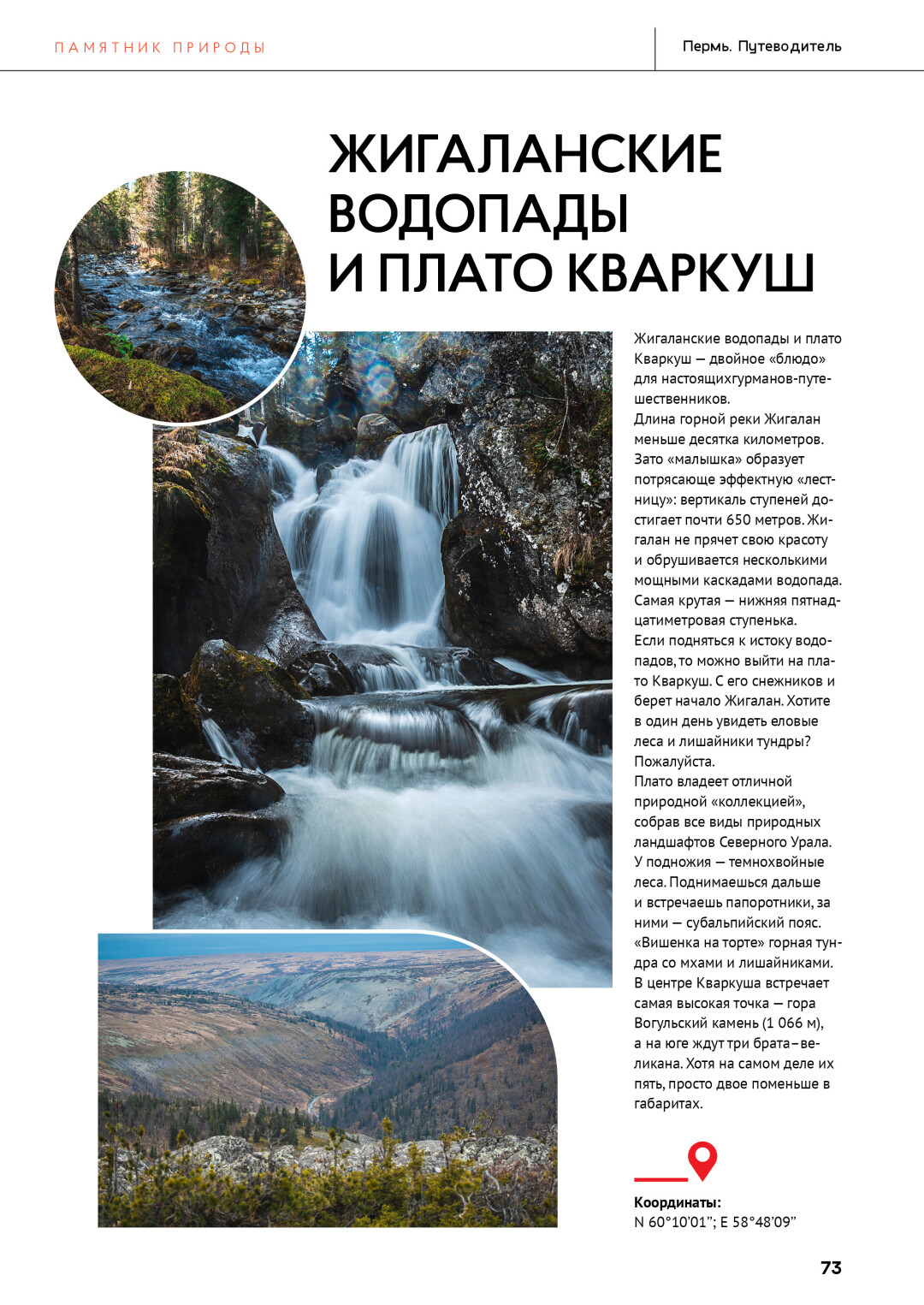 Первый выпуск туристического справочника посвящен 300-летию краевой столицы. Внутри собраны ответы на главные вопросы гостей города: где поесть, куда сходить и что посмотреть. А также книга посоветует оптимальный маршрут для прогулок и шопинга, расскажет о Пермском крае и его жизни.
