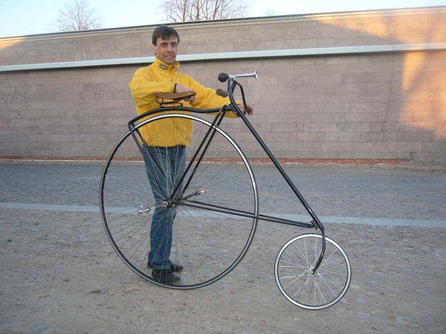 Велосипед, который я сегодня протестировал, подходит для шоу. Его высота – 6 метров и 43 сантиметра. Чтобы залезть на него, нужно еще несколько человек, которые бы держали конструкцию. Я хочу проехать на нем хотя бы тридцать метров. Тогда и большее расстояние будет нестрашно преодолеть.